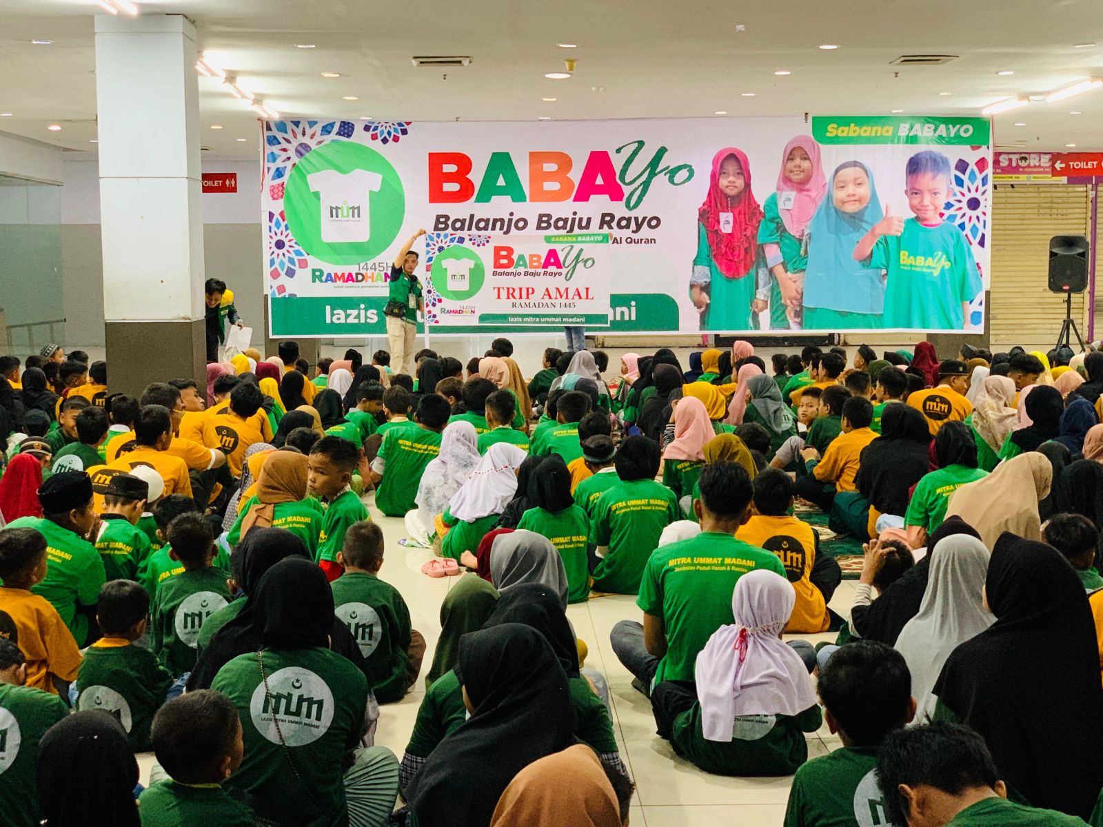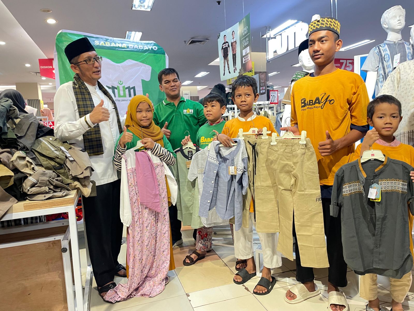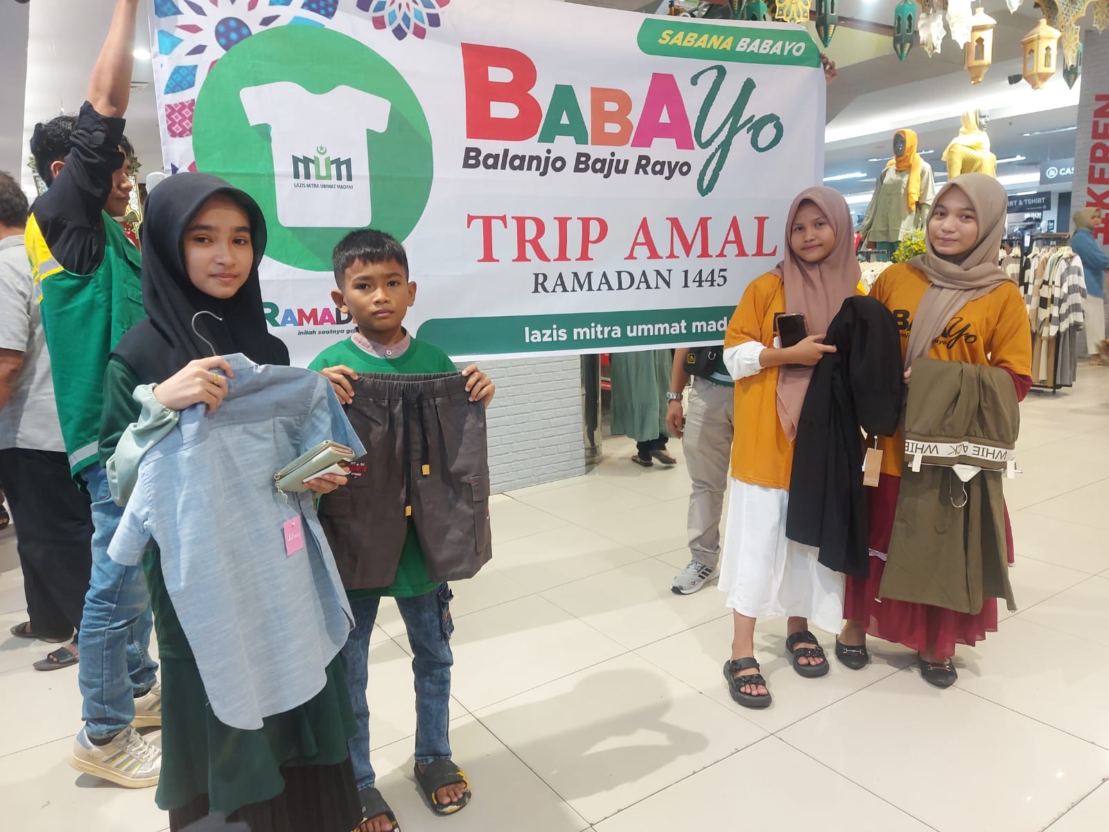SuaraRiau.co - Suasana lantai 3 Plaza Andalas Padang, Sabtu pagi (6/4) terdengar bergemuruh saat sebanyak 500 yatim dan dhuafa peserta BABAYO atau Balanjo Baju Rayo meneriakan yel yelnya secara serempak. Mereka bergembira karena terpilih diantara banyak anak yang lainnya untuk mengikuti program kolosal akhir Ramadhan 1445 H digelar Lazis Mitra Ummat Madani Padang dalam menyambut Lebaran Idul Fitri yang tinggal beberapa hari lagi.
