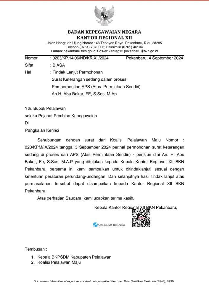 Respons BKN Atas Permohonan Koalisi Pelalawan Maju